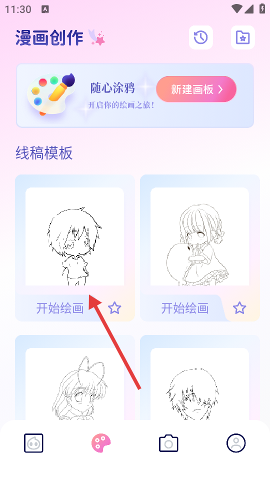 3、在漫画创作页面,选择线稿模板,点击对应模板的【开始绘画】按钮。
