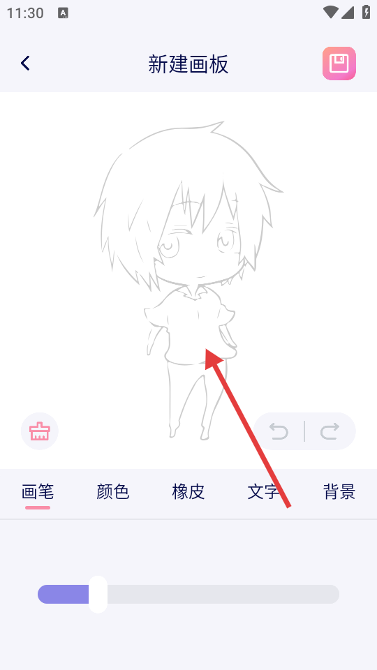 4、进入新建画板页面,可利用画笔、颜色等工具,对线条进行绘制创作。