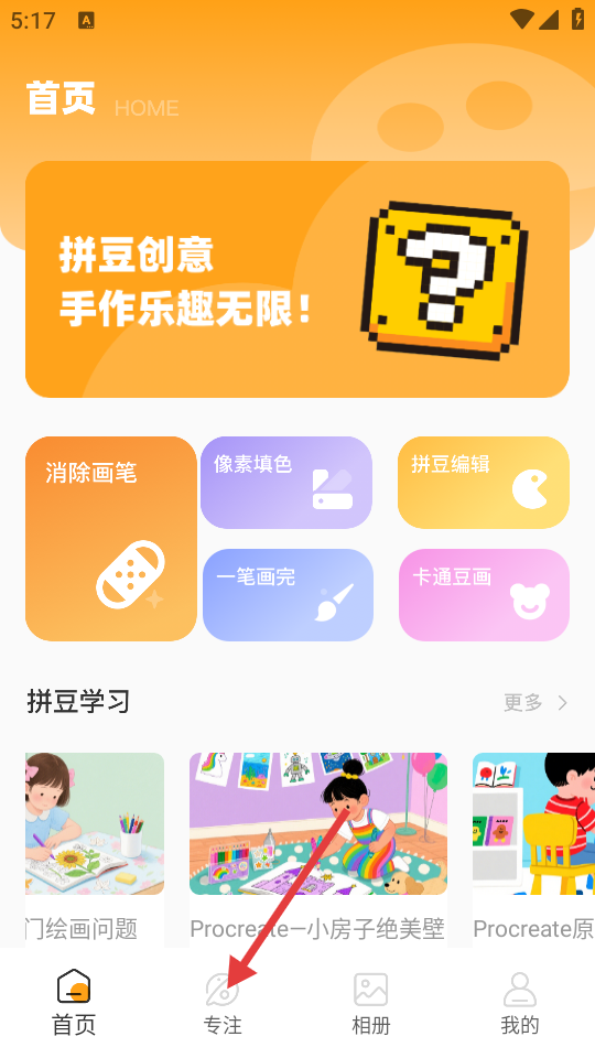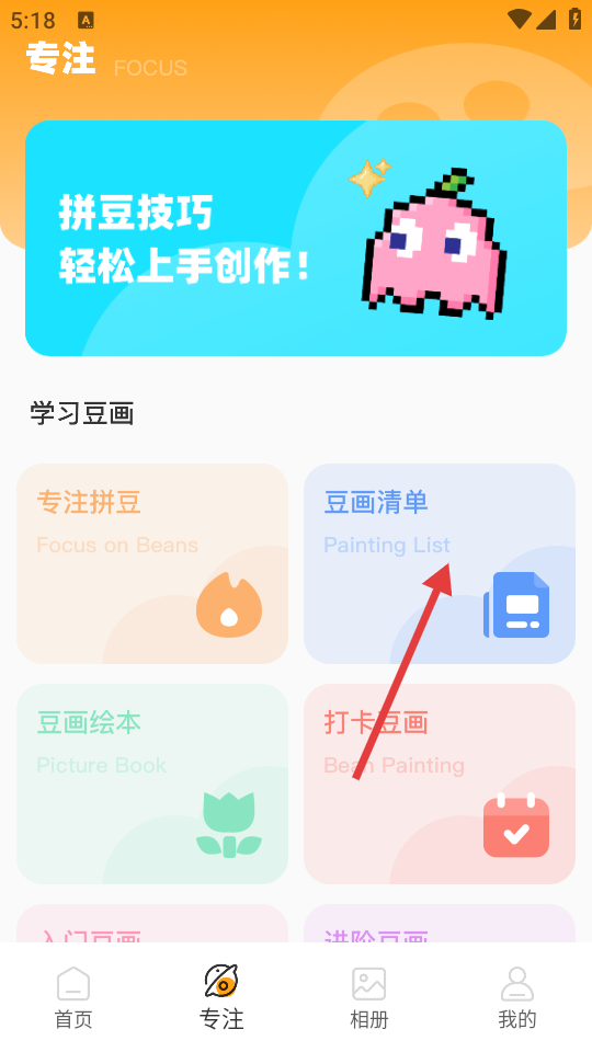 2、在专注页面,点击【豆画清单】选项,进入计划清单页面。