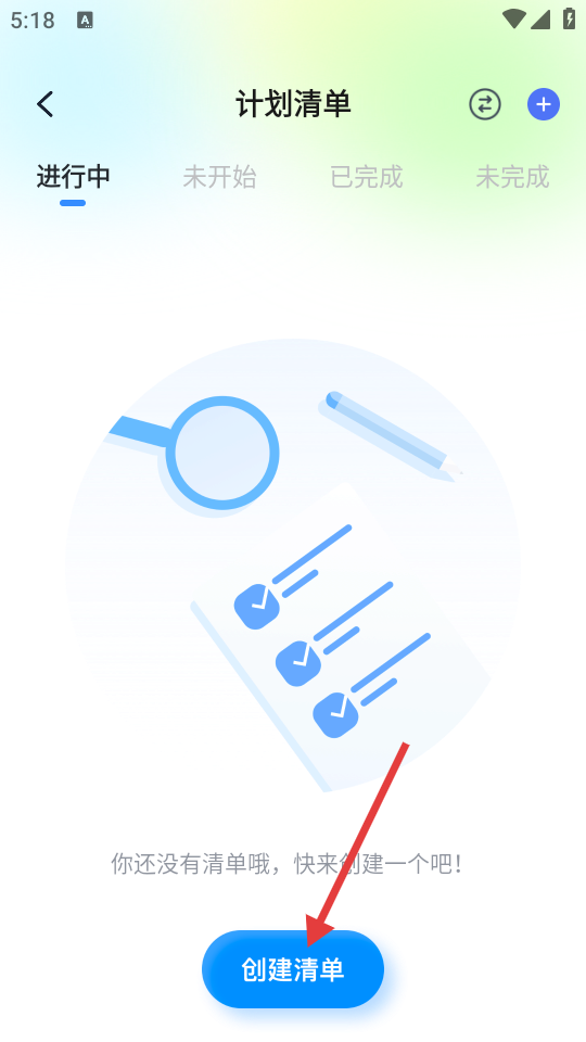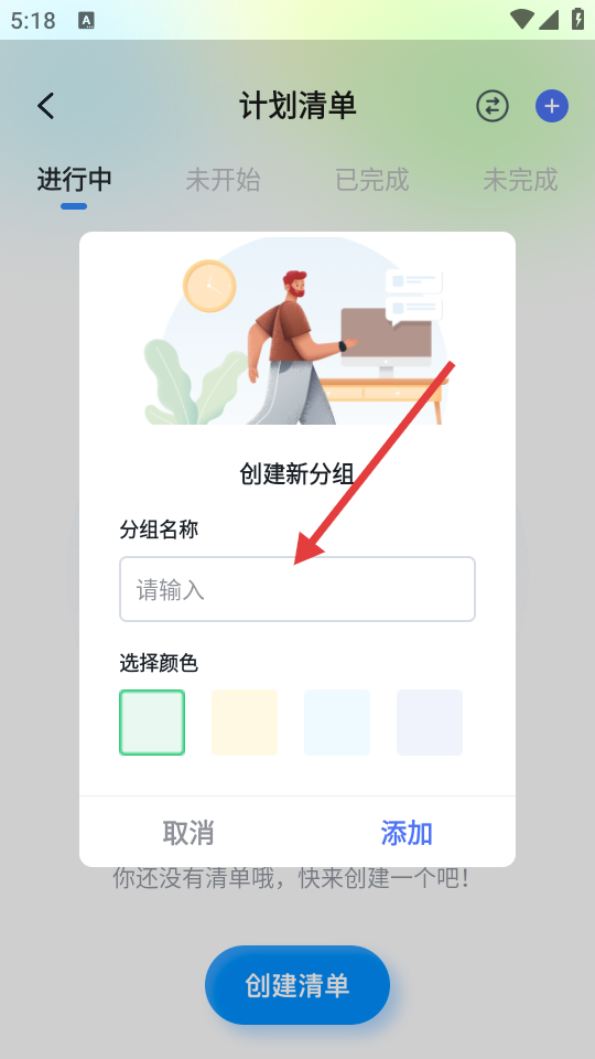 3、在计划清单页面,点击【创建清单】按钮,弹出创建新分组窗口。