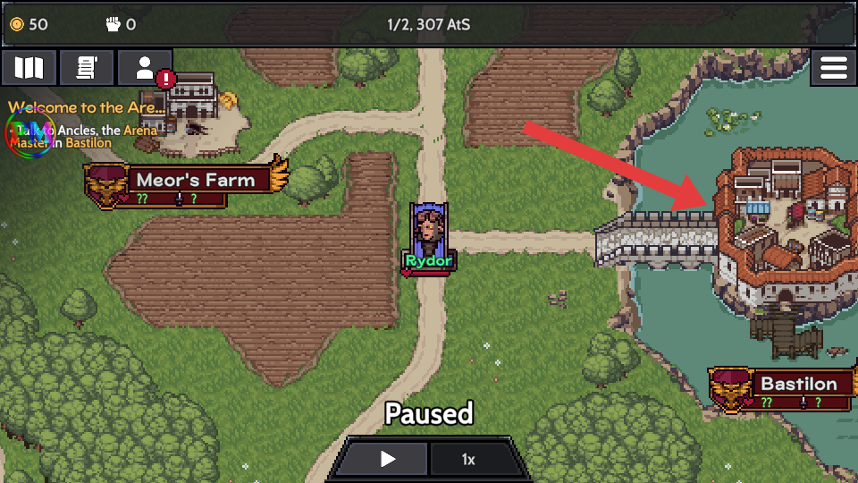2、在大地图中,前往【Bastilon】城镇区域,靠近并准备进入该城镇。