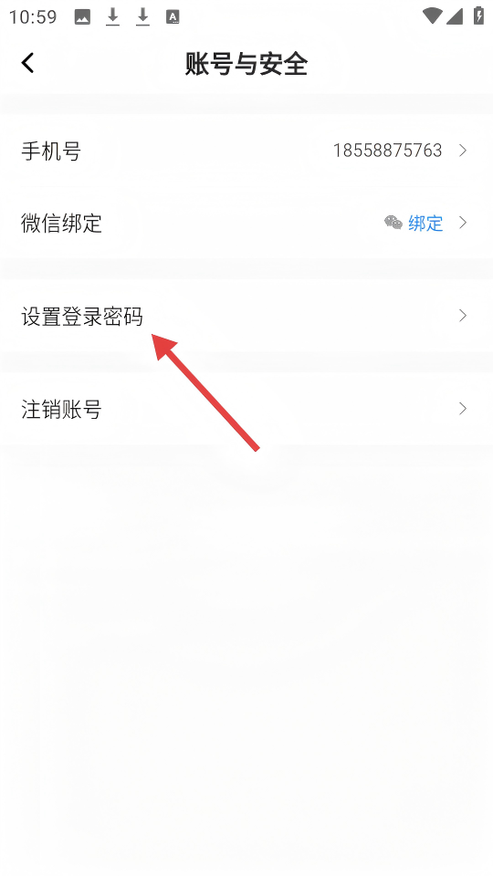 4、在【账号与安全】页面,点击【设置登录密码】选项。