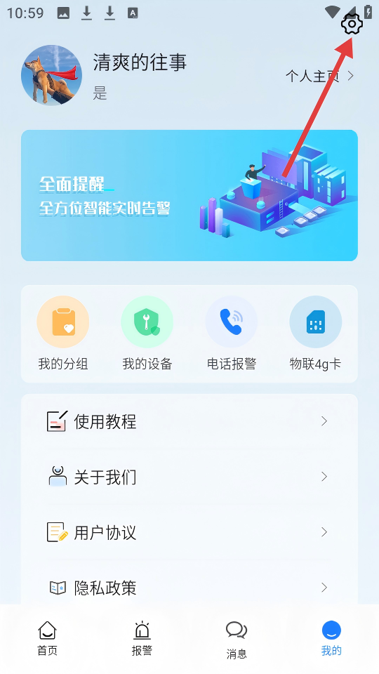 2、在我的页面,点击右上角的设置图标,进入设置页面。
