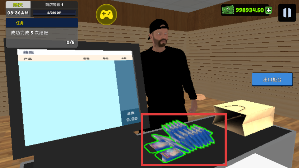 2、将顾客选购的卡包放置在收银台上,准备进行结账操作。