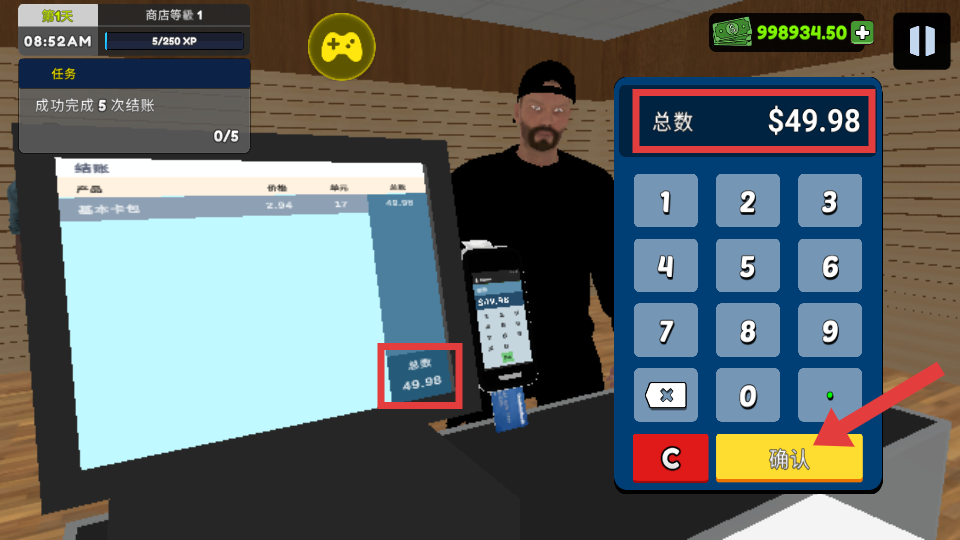 4、核对结账总数(如$49.98)后,点击【确认】按钮完成结账。