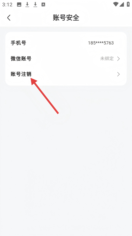 4、在【账号安全】页面,点击【账号注销】选项,可进行账号注销操作。