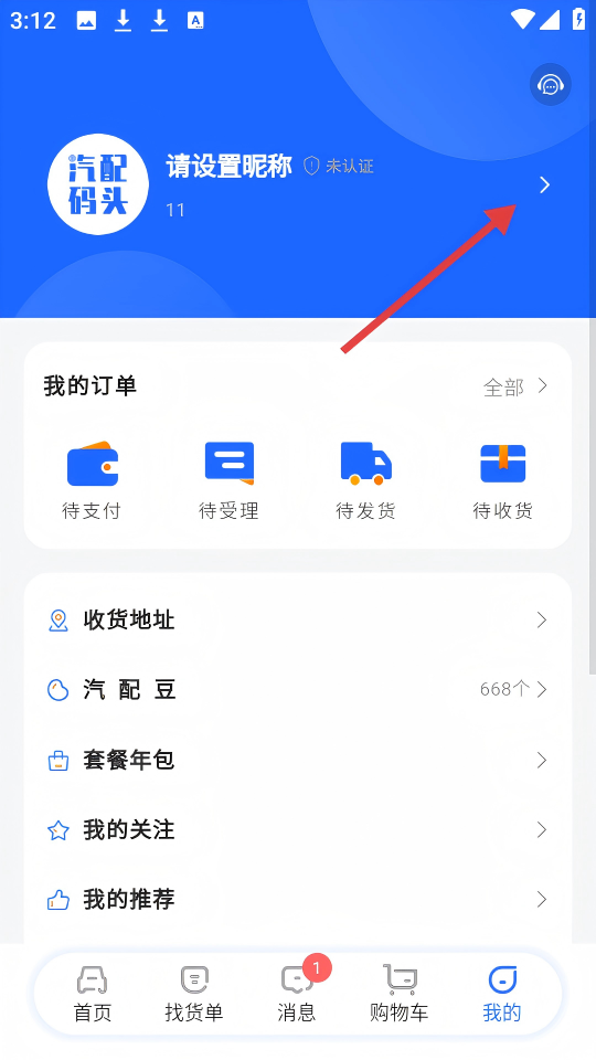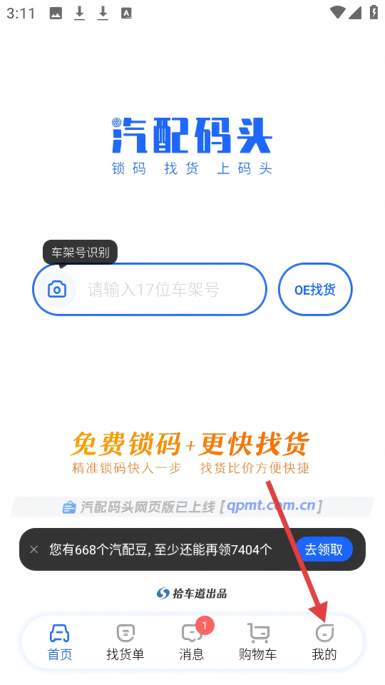 1、在汽配码头首页,点击右下角【我的】按钮,进入个人页面。