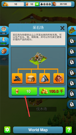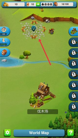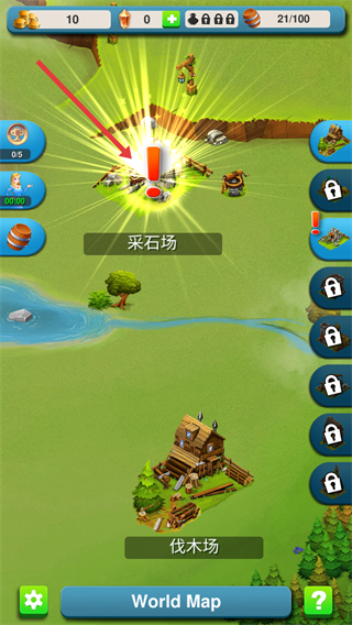 1、点击红色箭头指向的区域,解锁并进入采石场。