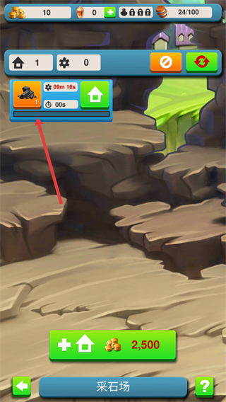 3、当采石场出现红色箭头指向的提示时,点击进入,可收取产出的资源。