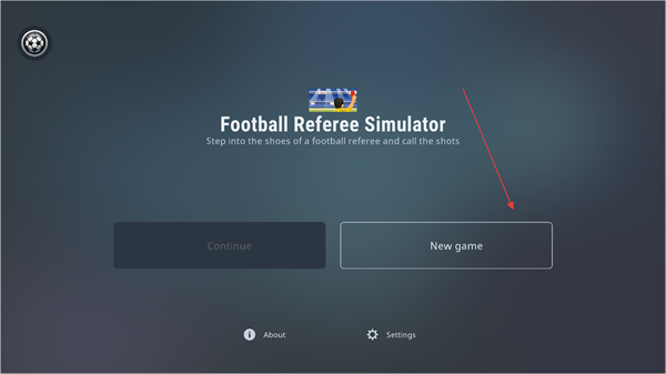 2、在游戏启动界面点击【New-game】可开启新的裁判生涯,【Continue】则用于恢复之前的存档进度,按需选择即可。