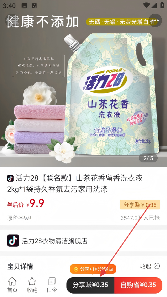 3、在商品详情页,点击【分享赚】按钮,进入商品分享页面。
