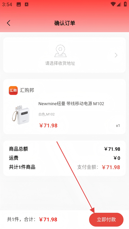 4、在确认订单页面,选择收货地址后,点击【立即付款】按钮,即可完成该商品的购买。