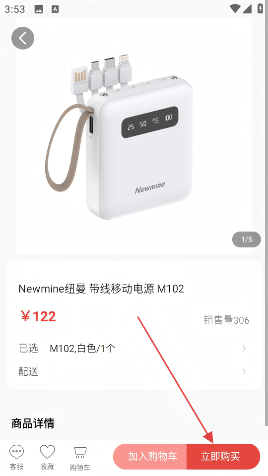 3、在商品的详情页,点击【立即购买】按钮,进入确认订单页面。