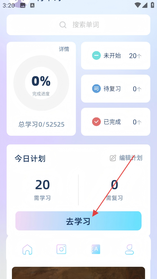 1、点击底部单词本样式的图标,进入学习计划相关页面。