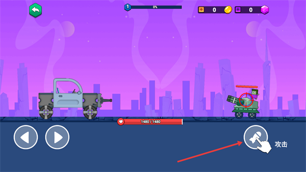 2、进入战斗场景后点击右下角【攻击按钮】瞄准敌方车辆,利用武器模块发起攻击推进进度。