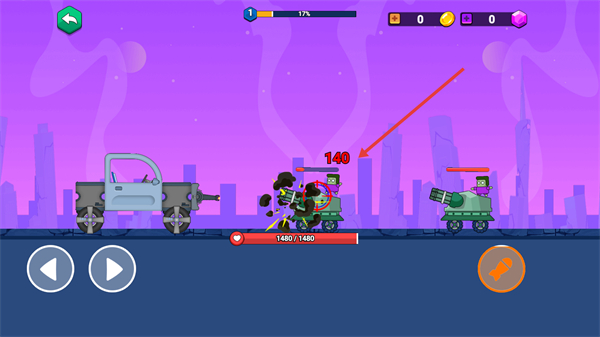 3、攻击命中敌方车辆会显示【140】伤害数值,持续攻击可快速消耗敌方血量完成目标。