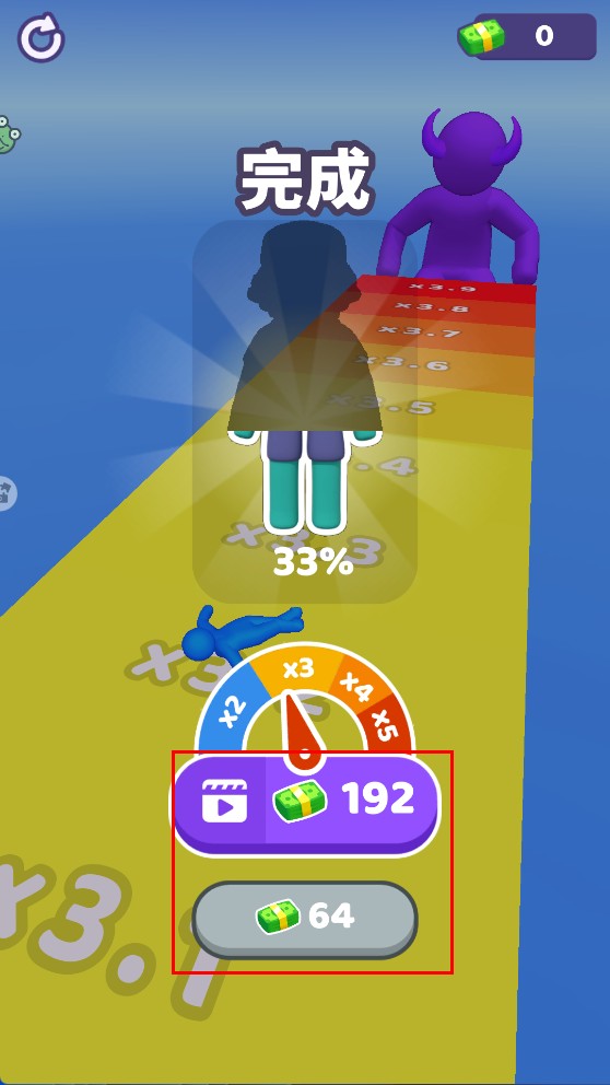 4、关卡完成后,选择【绿色货币-192】的紫色选项,或看视频拿更高奖励提升游戏收益。