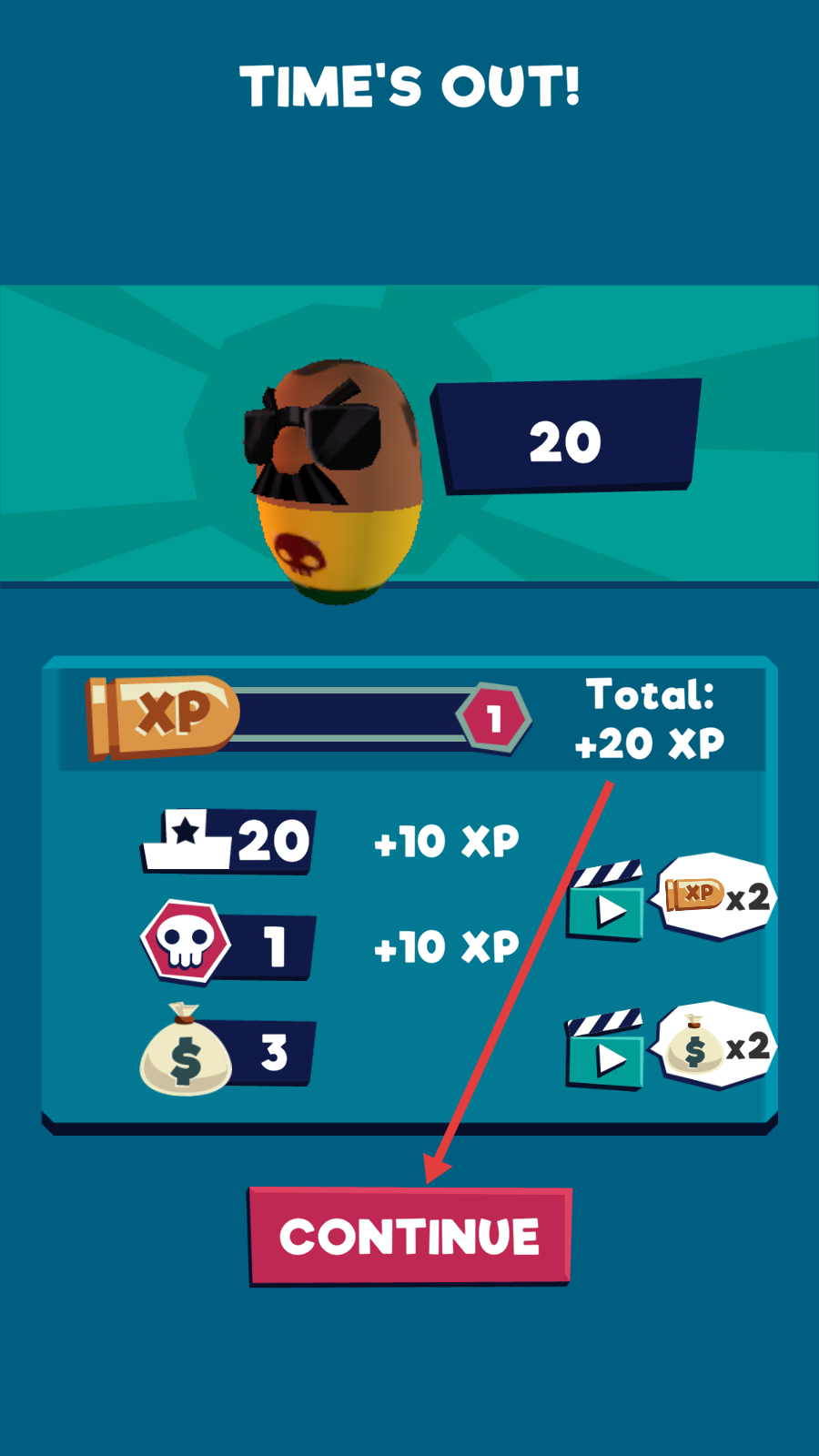 4、时间结束后,点击【CONTINUE】按钮,继续游戏。