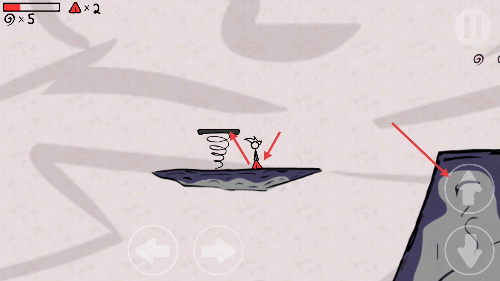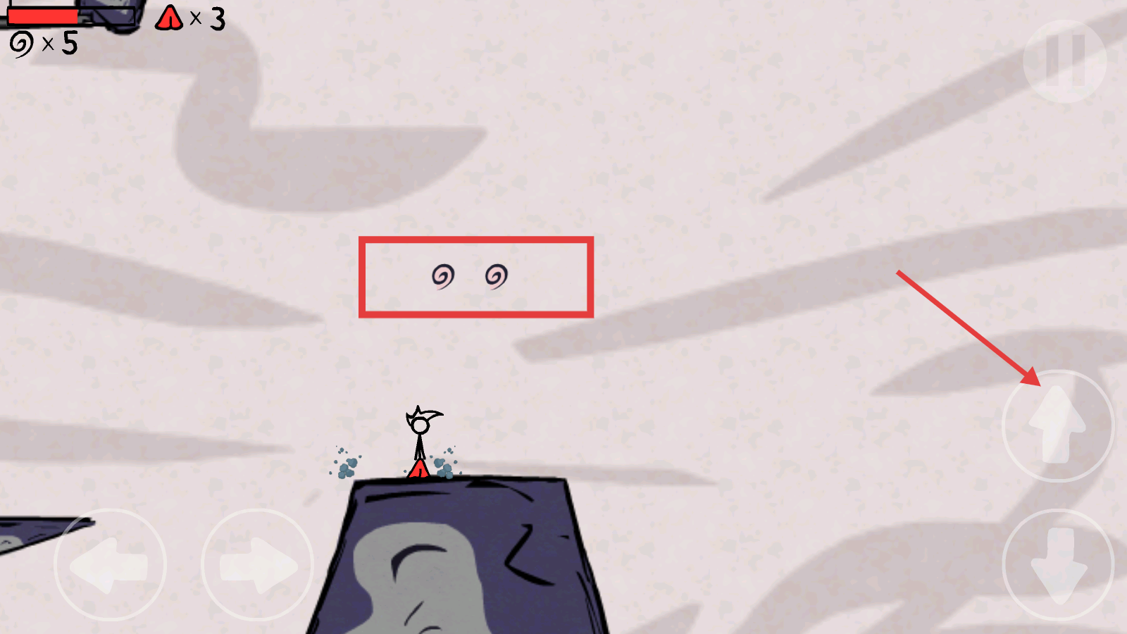 2、遇到螺旋状物品时,操控角色向上跳跃,收集这些物品。