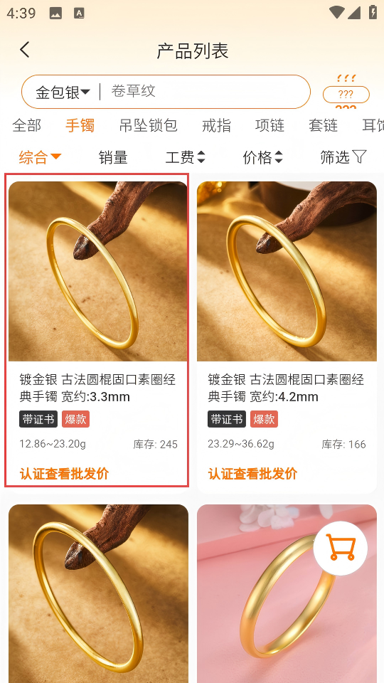 3、产品筛选便捷:可根据需求对珠宝产品实时筛选,快速过滤不符合需求的款式,精准定位目标产品,大幅缩短查找时间。