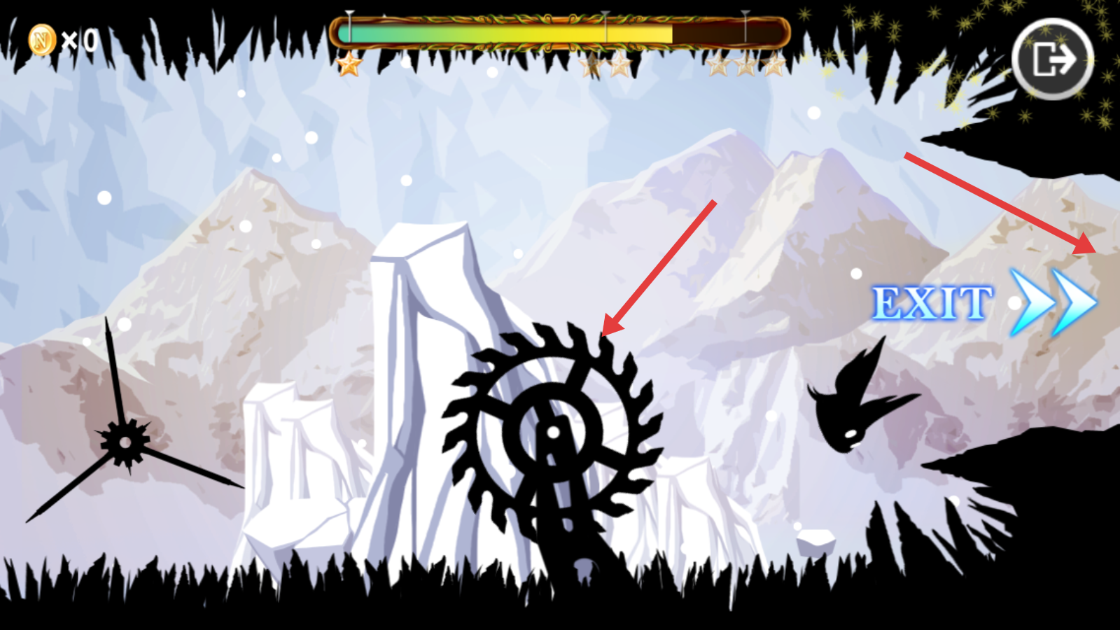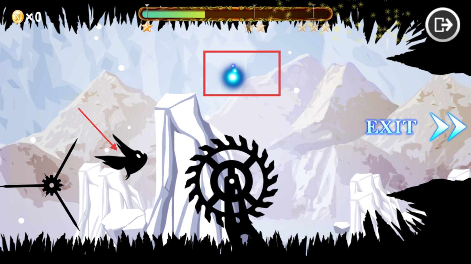 4、避开齿轮等障碍物,引导小鸟到达【EXIT】处,完成关卡。