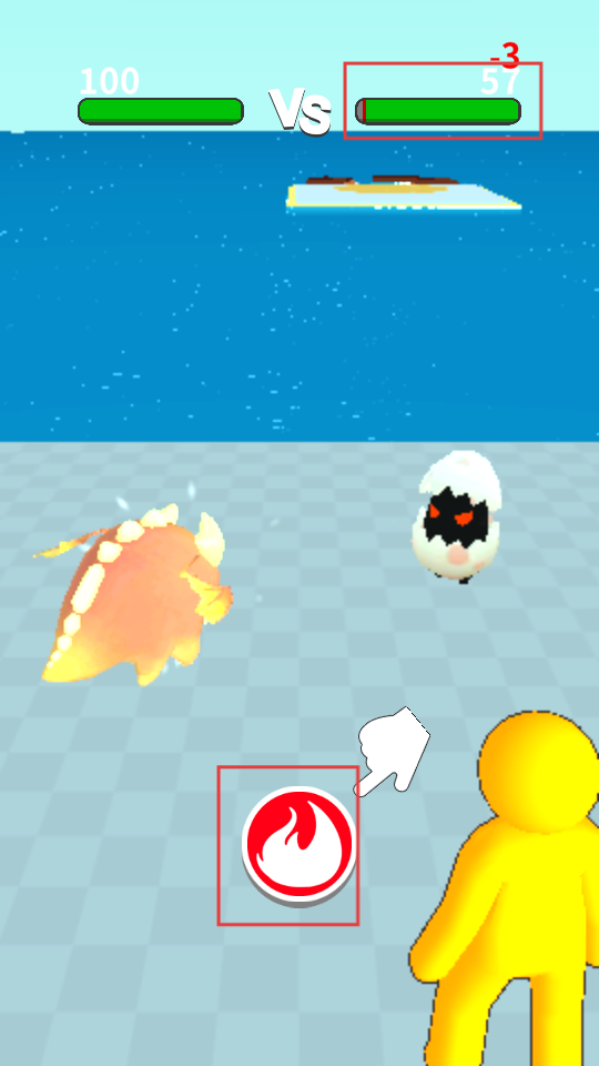 3、战斗时点击火焰技能按钮,对血条【57】的敌方造成伤害,提升战斗输出效率。