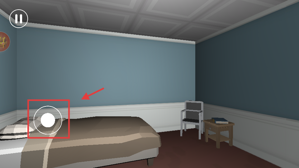 2、进入房间后,通过左侧操作按钮移动,探索房间环境。