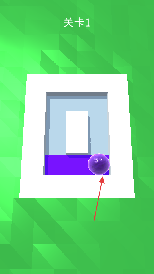 2、让紫色球体沿迷宫轨道滚动,填满整个区域,完成“关卡1”的挑战。