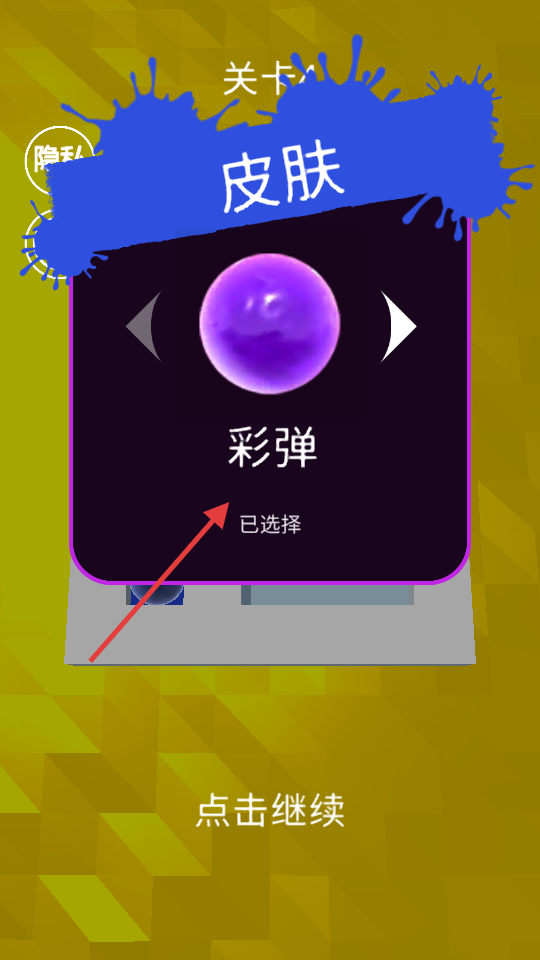 4、在皮肤界面,选择“彩弹”等球体皮肤并设为【已选择】,更换外观后继续迷宫挑战。