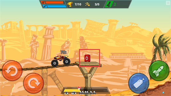 2、收集赛道上的道具红色油桶,增强卡车性能。