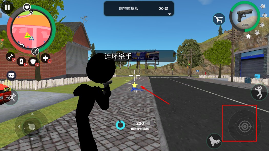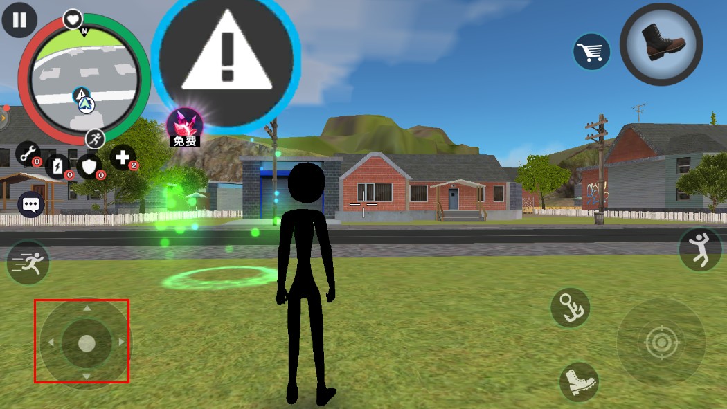 2、用左侧虚拟摇杆,控制火柴人在小镇场景移动,与NPC互动。