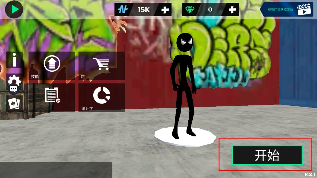 1、点击“开始”,操控火柴人角色,开启小镇冒险。