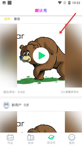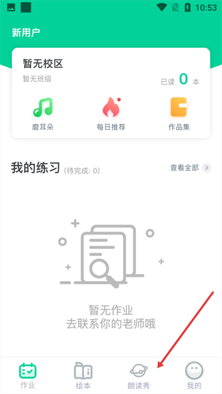 1、点击底部【朗读秀】选项,进入朗读秀页面。