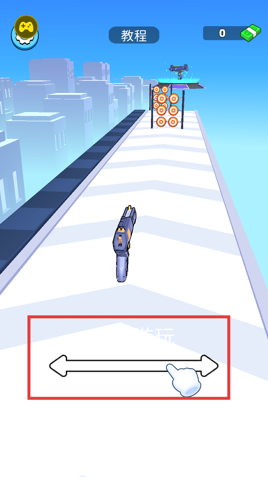 1、左右滑动屏幕,控制武器移动。