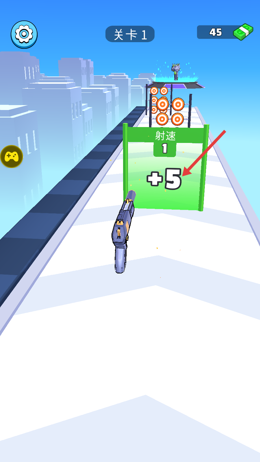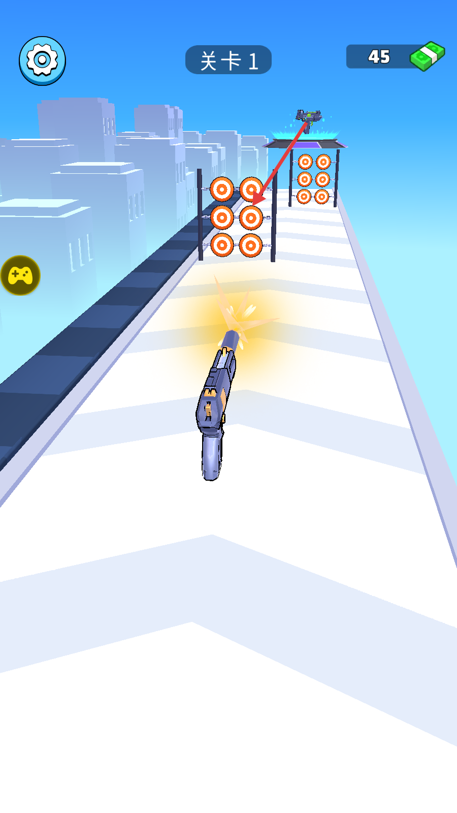 2、射击目标,击中靶心推进关卡。