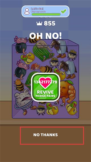 4、游戏失败后点击【nothanks】按钮重新开始。
