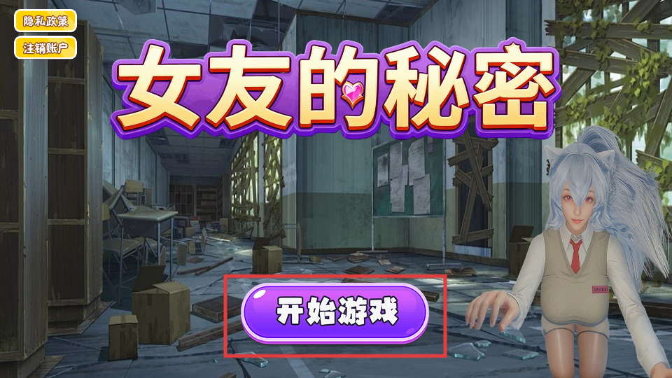 1、点击【开始游戏】按钮,进入【女友的秘密】恐怖校园逃生冒险,开启剧情。