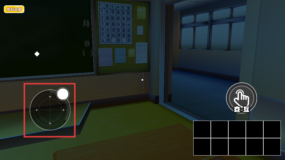 2、利用左下角【摇杆】控制角色移动,探索教室场景,搜寻逃生线索或道具。