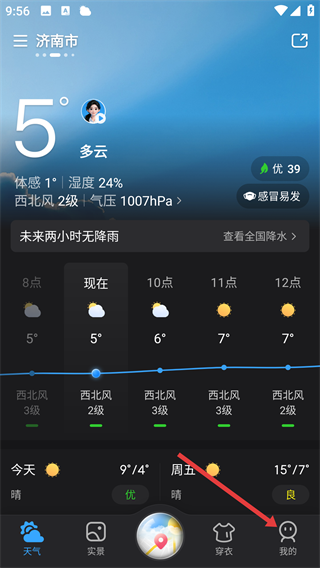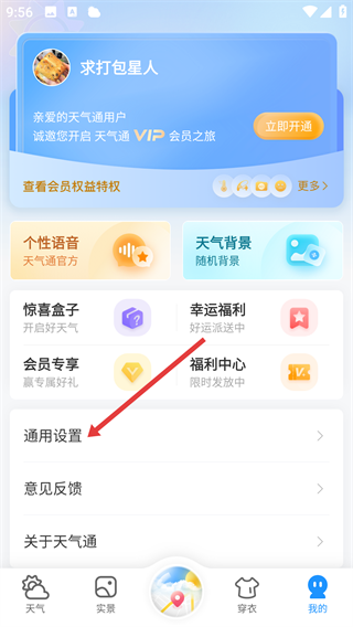 1、打开【天气通】软件,在主界面点击下方的【我的】选项,进入个人主页呢。