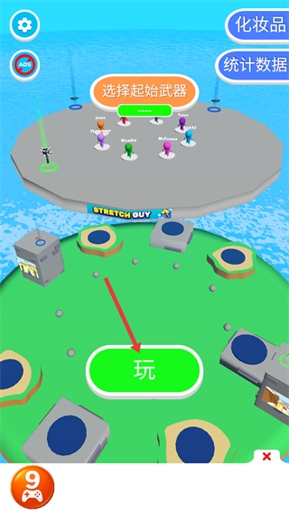 1、点击绿色【玩】按钮,进入游戏开始对战。