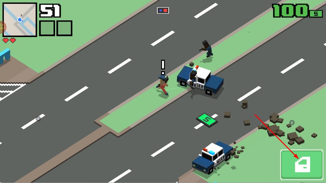 2、遇到警车等互动元素时,点击右下角绿色按钮,即可【上车/下车】。
