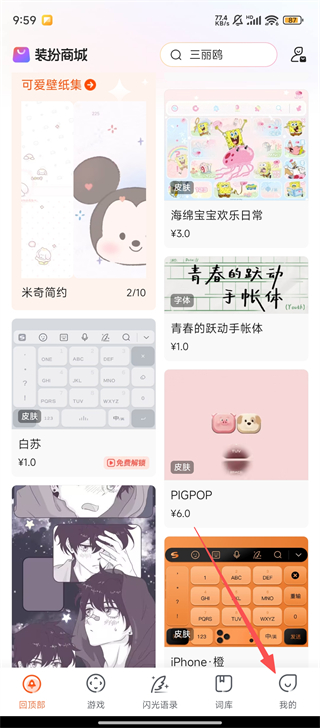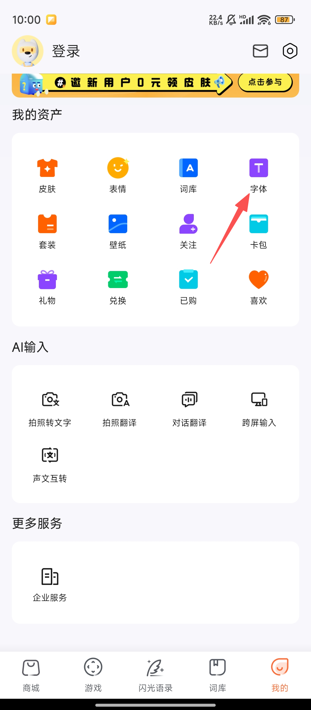 2、进入【我的】页面后,找到紫色的【字体】选项,点击它就能进入字体相关的设置界面咯。