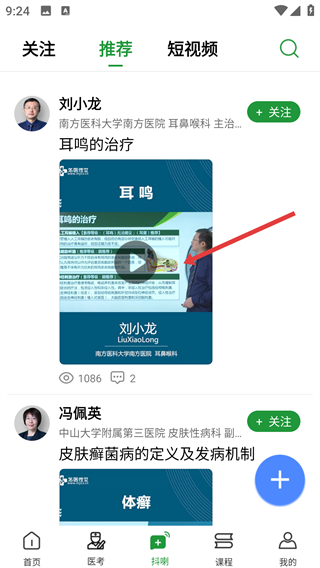 4、切换到【抖喇】板块,有医学专家的短视频,我们可观看学习医学知识,还能和专家互动交流啦。