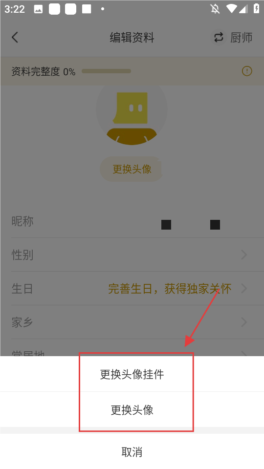 4、在弹出的选项中选择【更换头像】或【更换头像挂件】,完成头像更换操作。