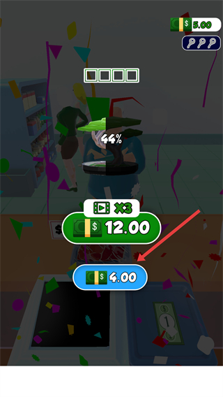 4、完成收银任务后,点击红色箭头指向的按钮,领取对应的奖励,继续下一轮收银挑战。