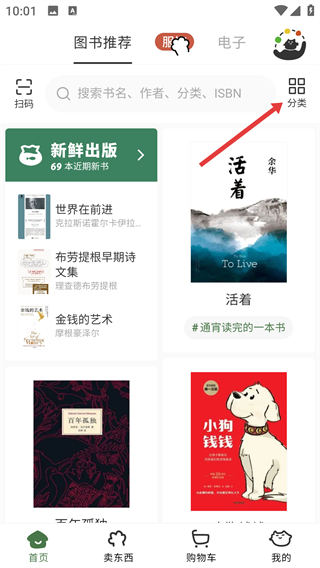 4、来到“卖东西”板块中,在这里能够卖自己不需要的书籍、服装、电子。
