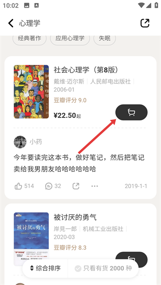 3、在心理学书籍页,点击目标书籍旁的【购物车】按钮,唤起品相选择框呀。