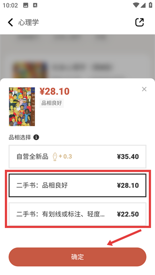 4、最后在品相选择框中,选好二手书品相,点击【确定】加入购物车,之后就可以购买啦。