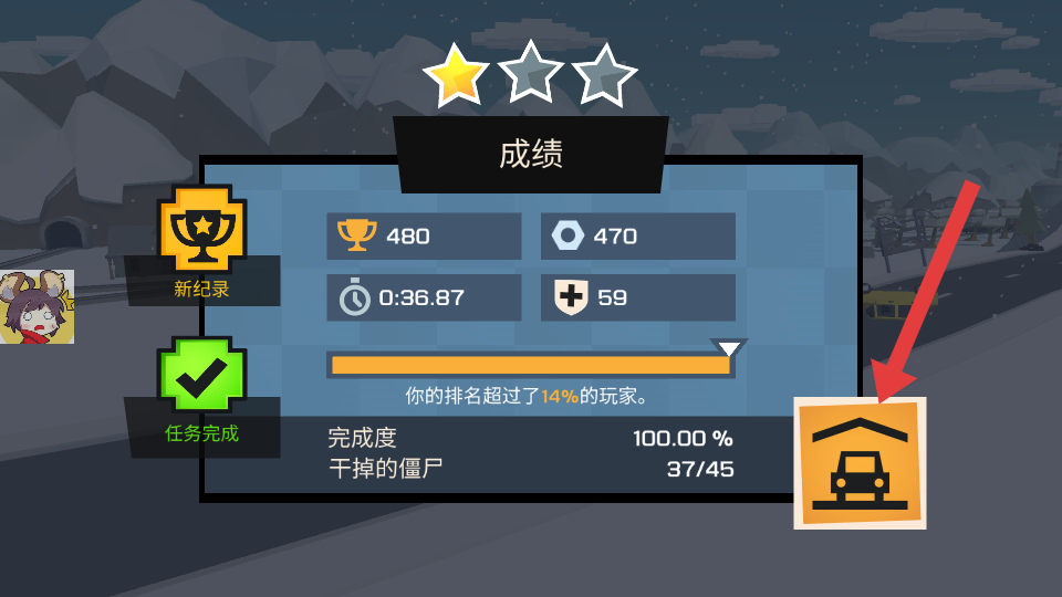 4、完成关卡后,点击车辆图标返回车库,挑战更高难度的关卡。