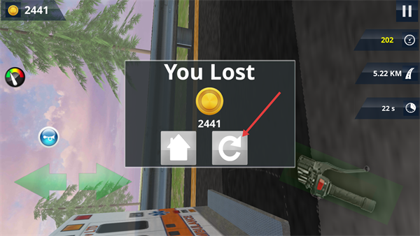 4、失败时点击下方的重试按钮,即可领取金币收益并重新开始对局。
